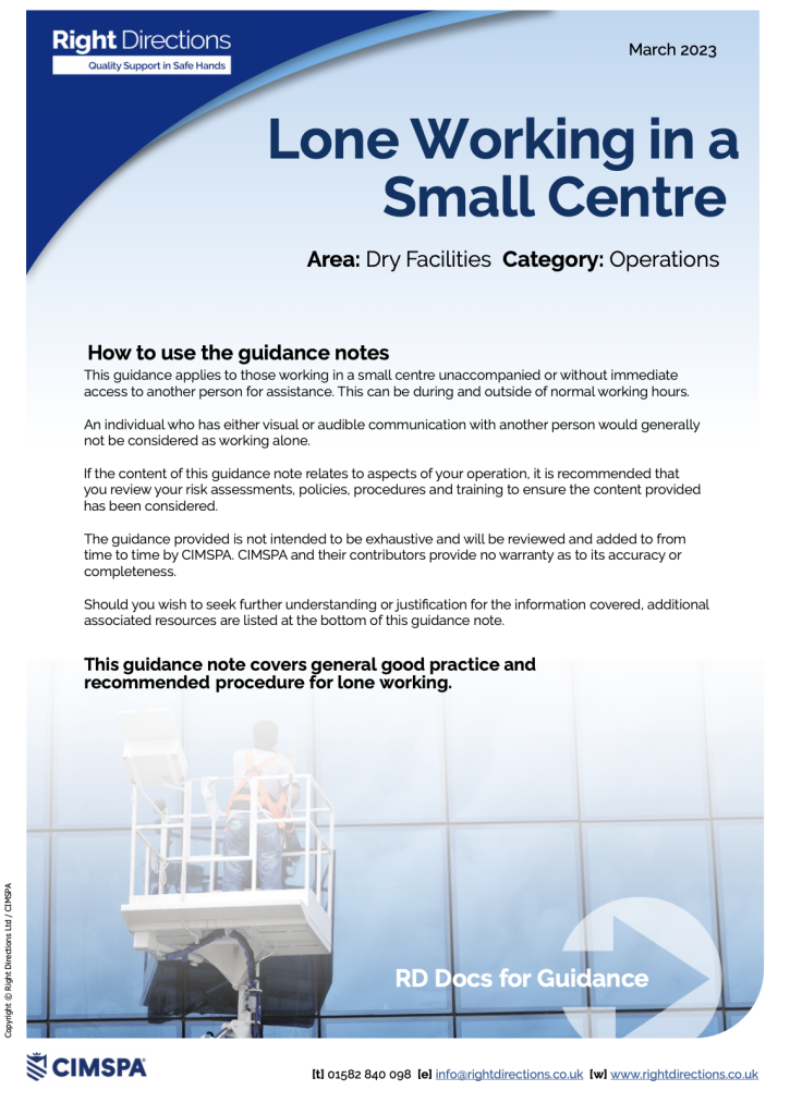 This guidance applies to those working in a small centre unaccompanied or without immediate