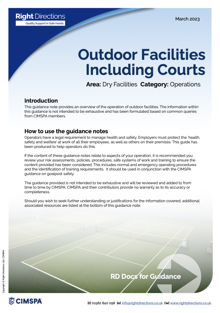 This guidance note provides an overview of the operation of outdoor facilities. The information within